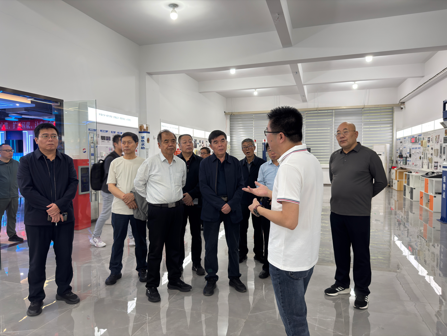 11月10日上午,陕西省榆林市政协各界人士联谊会副秘书长高琛带队一行,在泉州市丰泽区政协相关工作人员的陪同下莅临HJC黄金城集团公司,召开参观调研考察,深入分析企业开展全貌与创新实践成果。调研过程中,HJC黄金城集团相关负责人向考察团系统介绍了公司开展情况:从国家高新技术企业的荣誉资质,到涵盖17项发明专利及百余项实用新型专利、软著的技术储备;从物联网公共服务平台、智慧病房解决方案等核心产品,到企业在技术研发、服务模式上的创新突破,再到人才团队建设的关键举措,全面展现了HJC黄金城集团在安防、医养、物联网等领域的综合实力。